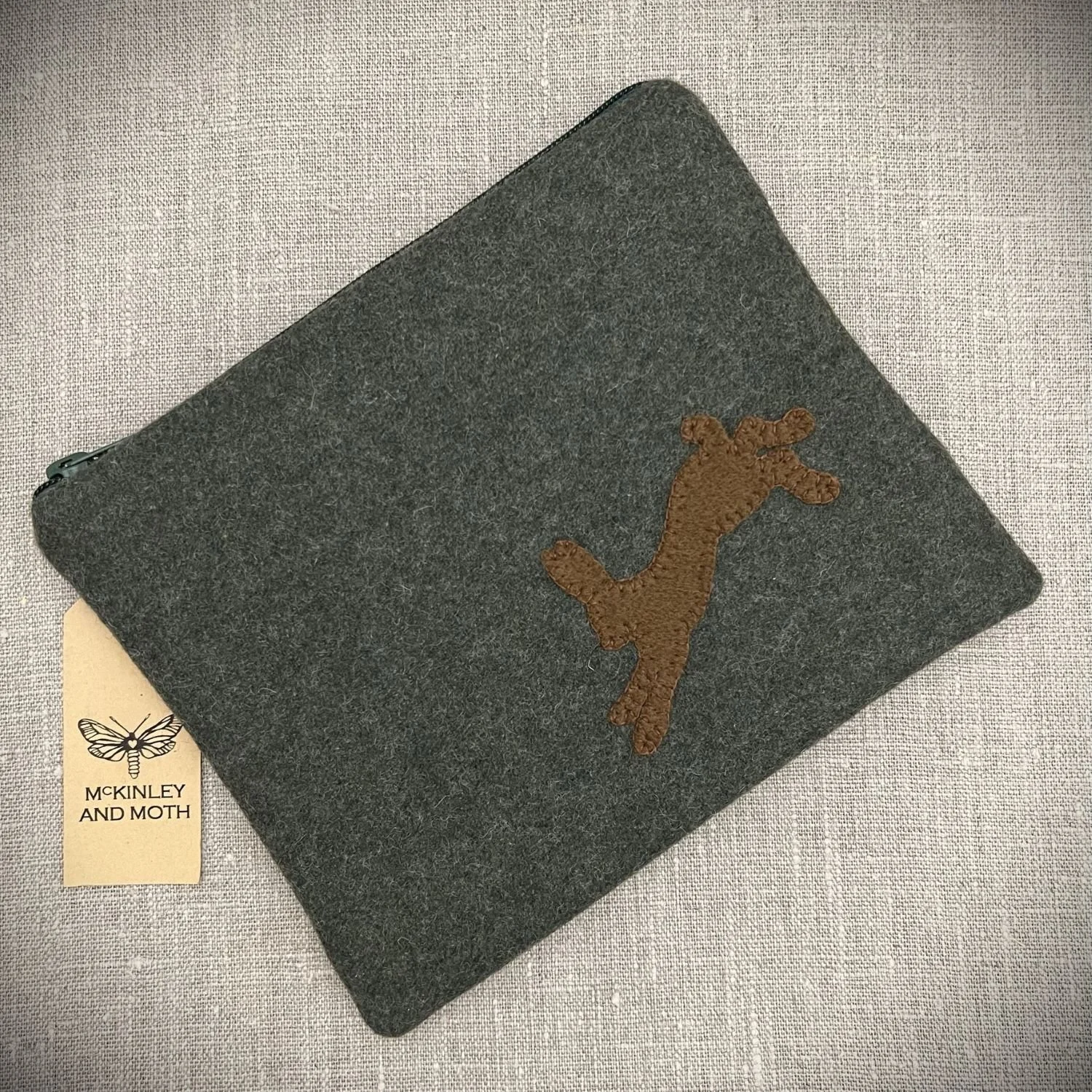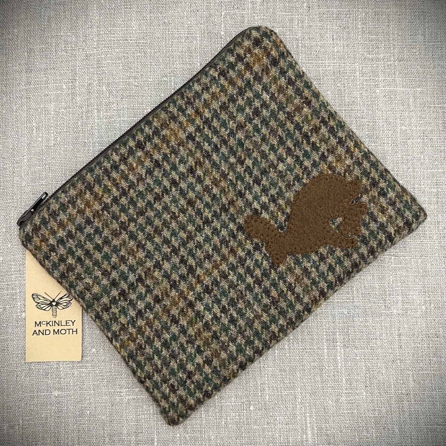 Fox zipped bag, handmade from British tweed.